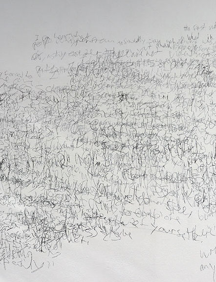 During the times when no one is around I write on the walls, asemic writing, getting out a flow of thoughts. These writings will be a flow of thoughts surrounding the idea of vulnerability, my relationship with vulnerability, and the experiences of doing this performance piece. Even when someone is not within the space to participate there is still an action or scribble of the artist’s hand meaning the space is never truly inactive. My hope is that the viewer will leave acknowledging their emotions and self, leave empowered, and a feeling of release. To quote Criss Jami, “To share your weakness is to make yourself vulnerable; to make yourself vulnerable is to show your strength.”